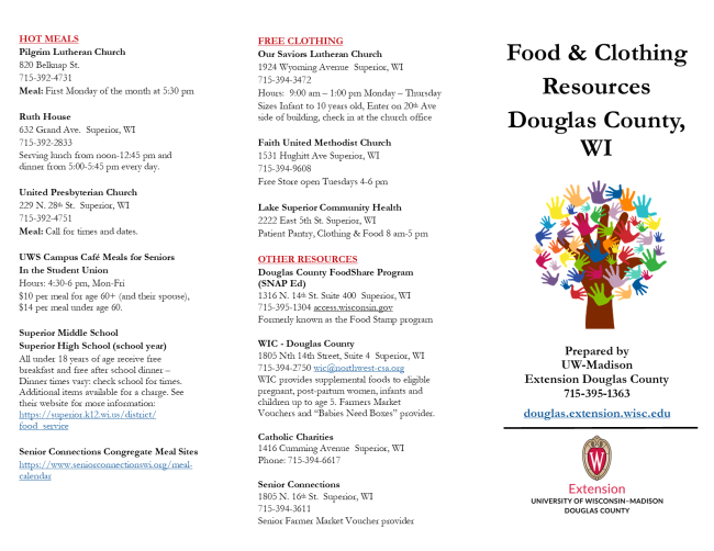 Check out our resource for food shelves, hot meals and clothing resources in Douglas County.